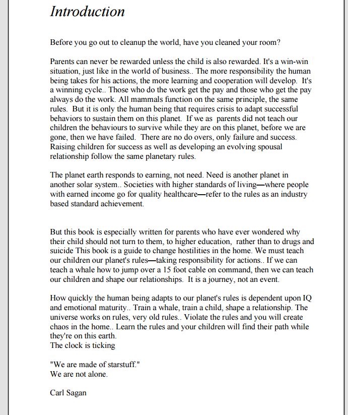 How quickly the human being adapts to our planets rules is also dependent upon IQ and emotional maturity. Train a whale, train a child, shape a relationship. The universe works on rules, very old rules, 15 rules to be precise. Violate the rules and you will create chaos in the home, learn the rules and your children will find their path while they are on the planet, and we are no longer here to support. We got one chance to get it right.