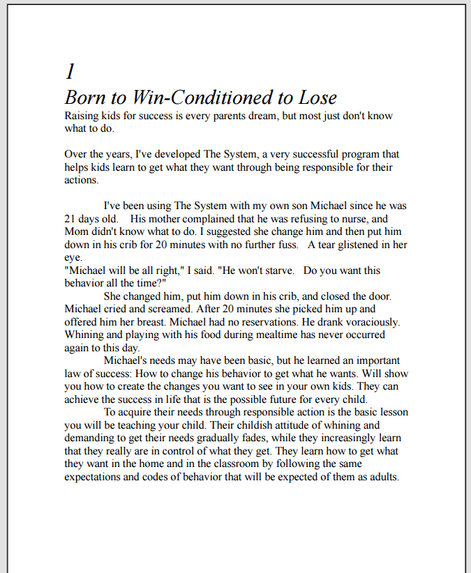 What does everyone in this misinformed world need to know? Renowned parenting psychologist Jeffrey M. Bruns answers the most difficult questions applying 15 Basic rules based on the scientific research BF Skinner utilizing the revelation of cutting edge operant conditioning. Business owner in Kansas City Missouri said Jeff's Basic 15 rules is based on wise teachings of the old using moderate illustrations an example so one will clearly understand how to create the change one needs today. In my experience this book offered some very relevant examples and communicating with my children in a meaningful way.