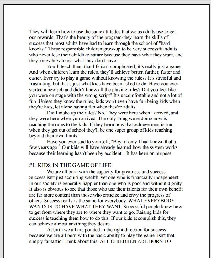 Why do we use privileges instead of punishment? Punishment requires that the parents take responsibility. The parents shouldn't be taking responsibility, that's the child's job. How you get children to take responsibility? How do you get anyone to take responsibility? When children reach the age of reason between six and seven years old, they should be on a monetary management program like any employee. When my children are playing in their room and their behaviors begin to interfere with the harmony in the home. I tell them, with a smile, that I can intervene and help them as a referee. But they will each have to pay me a dollar for my services. Then I ask them again, would you like me to referee? If they reject my services, which they often do, I then ask them how they will solve their issue.
